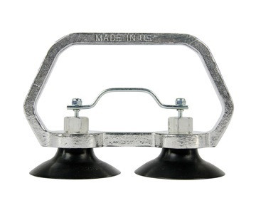 A: This model features double 3-inch diameter cups, making it more compact than the larger 4-inch and 5-inch models while still providing adequate suction for raised floor panel lifting.