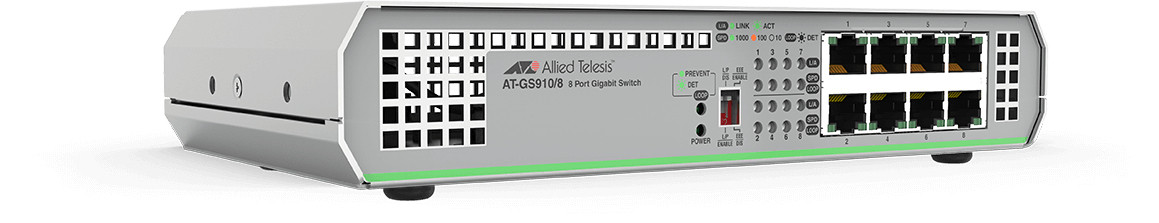 The Allied Telesis GS910/8 is an unmanaged Gigabit Ethernet switch designed for seamless connectivity in desktop and small network environments. With its plug-and-play functionality, this switch requires minimal to no setup, making it an ideal choice for users looking for a hassle-free networking solution.
