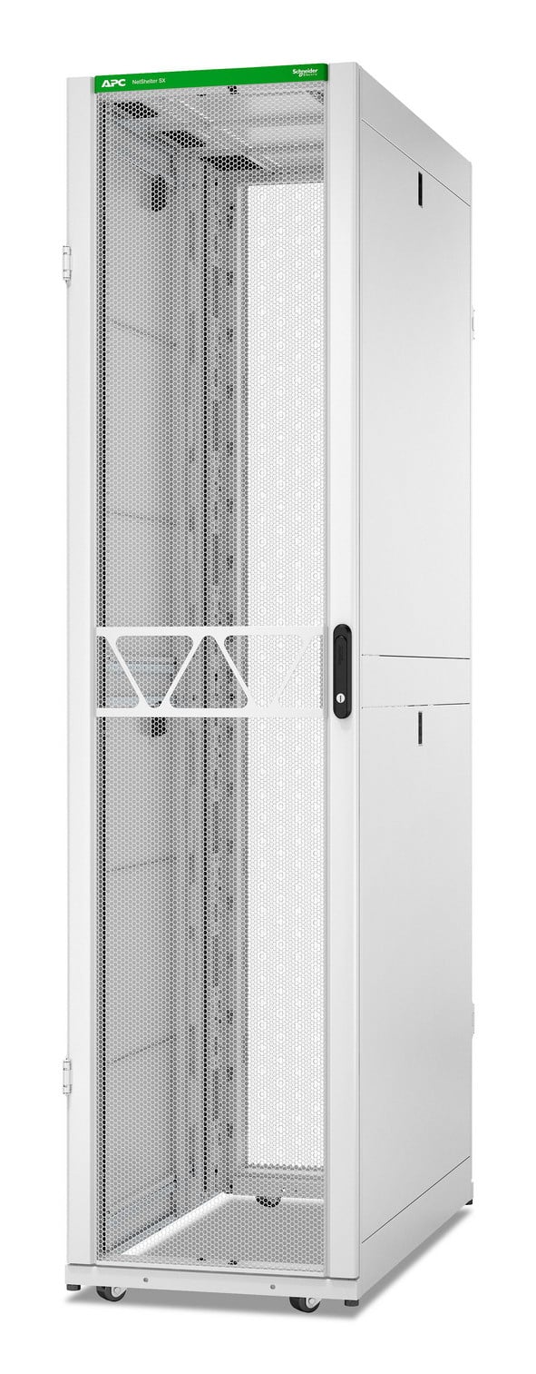 The APC AR3308B2 rack cabinet is a redesigned NetShelter SX enclosure engineered for demanding IT environments. It offers larger load capacities and ample space to support high-density computing, making it ideal for AI, server, and networking applications. The cabinet features a modern white finish suitable for colocation and customer-facing setups.