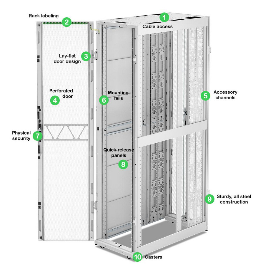 The APC NetShelter SX AR3308W2 rack enclosure is a redesigned, trusted solution built for demanding IT environments. This 52U white rack cabinet offers larger load capacities and ample space to support high-density computing, making it ideal for AI, server, and networking applications. Featuring a modern design suitable for colocation and customer-facing businesses, it simplifies workflows with easy access to cabling and equipment.