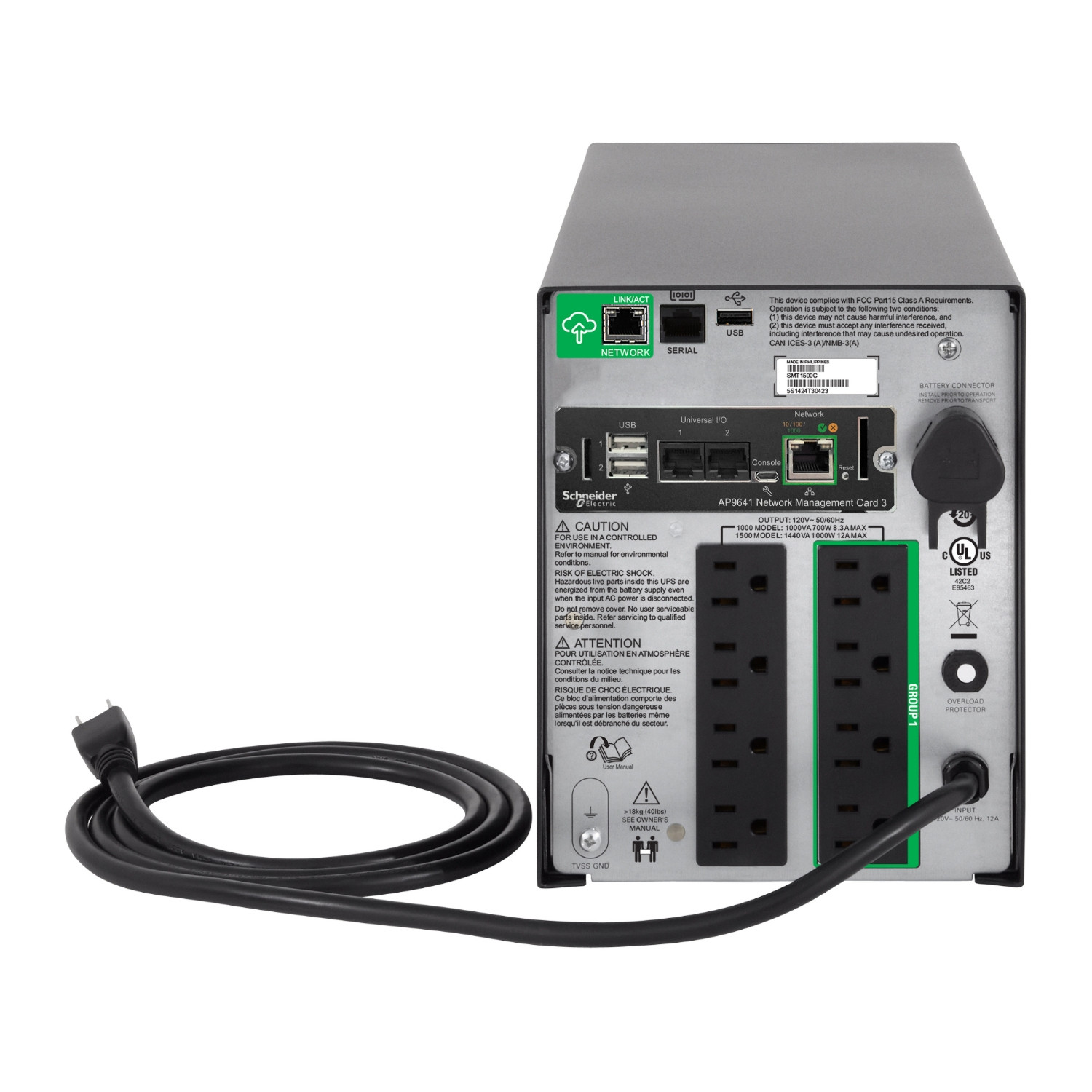 The APC Smart-UPS SMT1500CNC is expertly designed for IT professionals and network administrators, ensuring business uptime and continuity. This 1.44 kVA line-interactive tower UPS delivers pure sine wave power, effectively supporting critical electronics during power disruptions. Key features include: