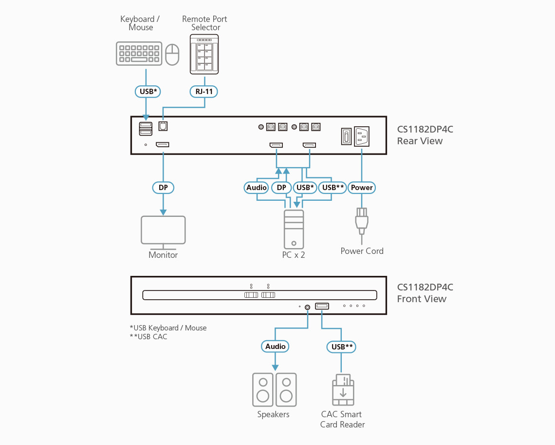- Isolation and Security: Provides isolation between computer sources and peripherals while sharing a single keyboard, mouse, monitor, speaker set, and Common Access Card (CAC) reader.