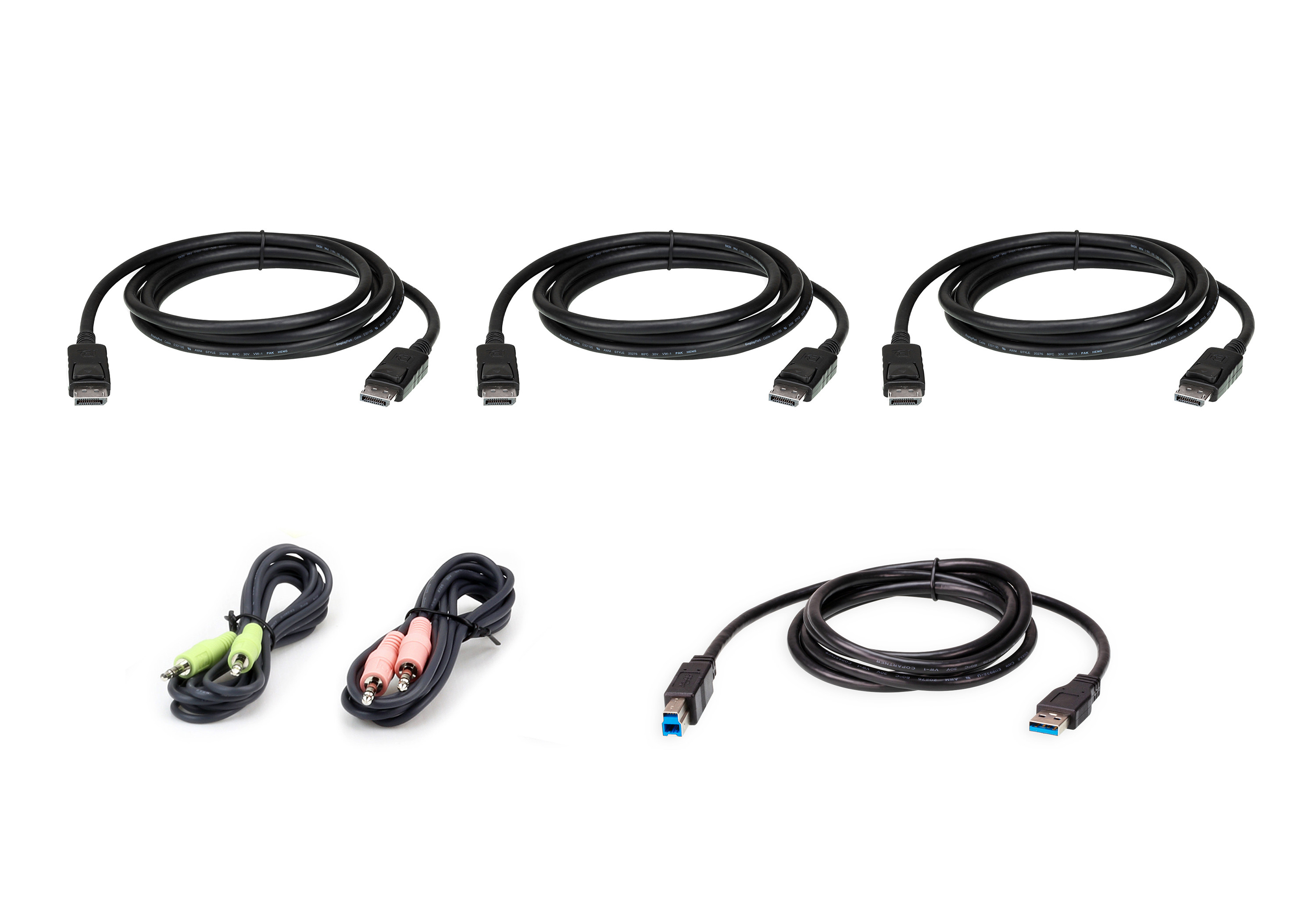 The ATEN 2L-7D03UDPX4 Secure KVM Cable is designed to provide high-quality data connections between your Secure KVM Switch and DisplayPort servers or computers. This cable kit supports the connection of video, USB keyboard/mouse/CAC, and audio (speaker), ensuring excellent performance with ATEN PSS PP v3.0 Secure KVM Switches. With a length of 118.1 inches (3 meters), it offers flexibility in setup while maintaining a sleek black design.