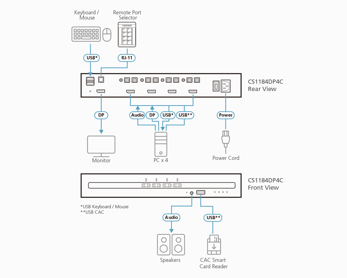This KVM switch is ideal for government, military, healthcare, and financial institutions that require high-level desktop security and data protection.