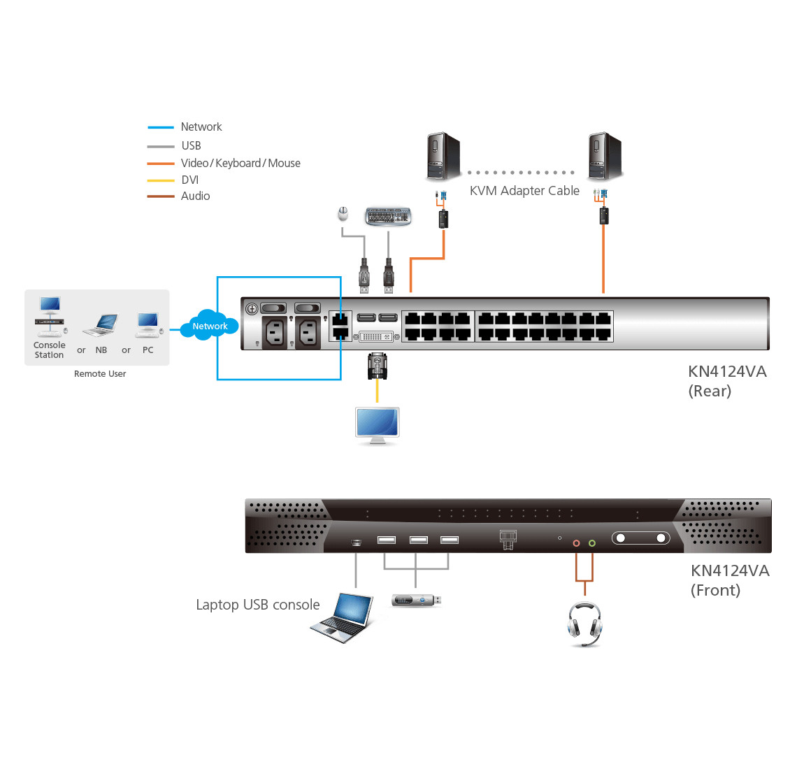 With features like Message Board, Panel Array Mode™, and Mouse DynaSync™, the KN4124VA is designed to save time and reduce costs, allowing administrators to manage their data centers from virtually anywhere.