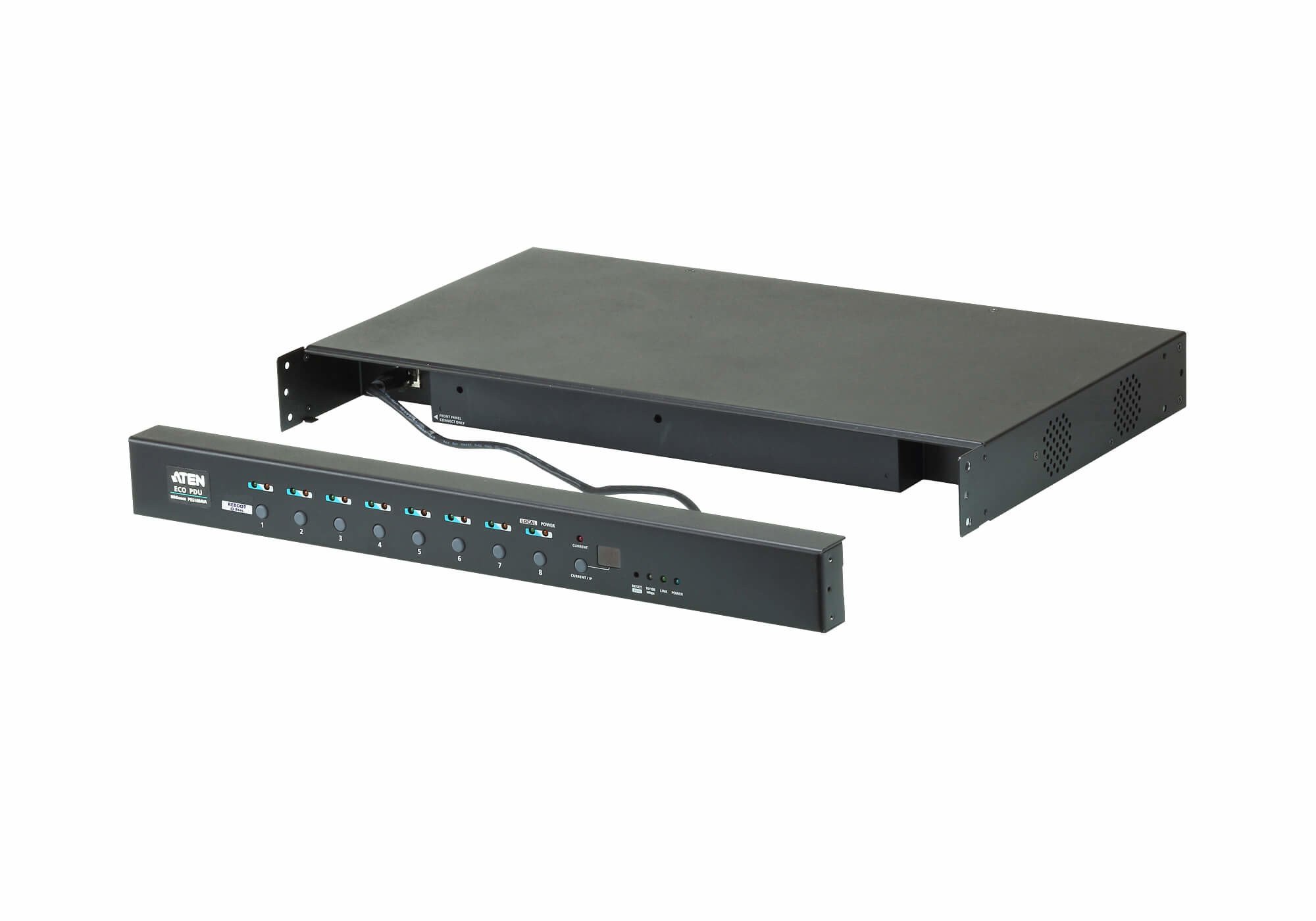 Ideal for Pro AV applications, the PE6108AV eco PDU is an intelligent 1U rack PDU that features 8 AC outlets in an IEC socket configuration. Its unique design with a detachable front panel makes it convenient for mounting with various Pro AV equipment in 19” racks at different depths.