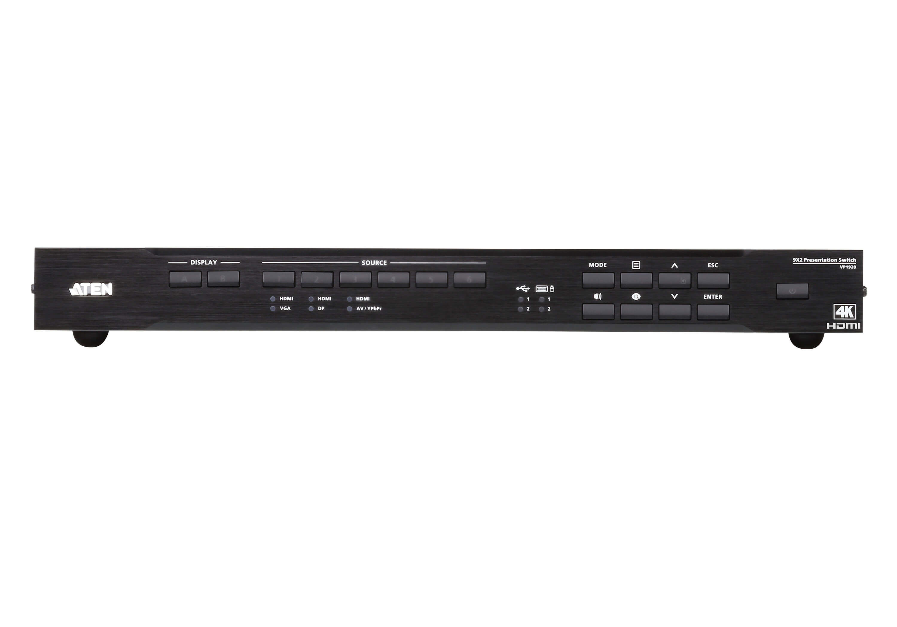 The ATEN VP1920 is a versatile 3-in-1 presentation switch that combines a video matrix switch, audio processor, and analog-to-digital converter. Designed to enhance the efficiency and impact of professional presentations, it features: