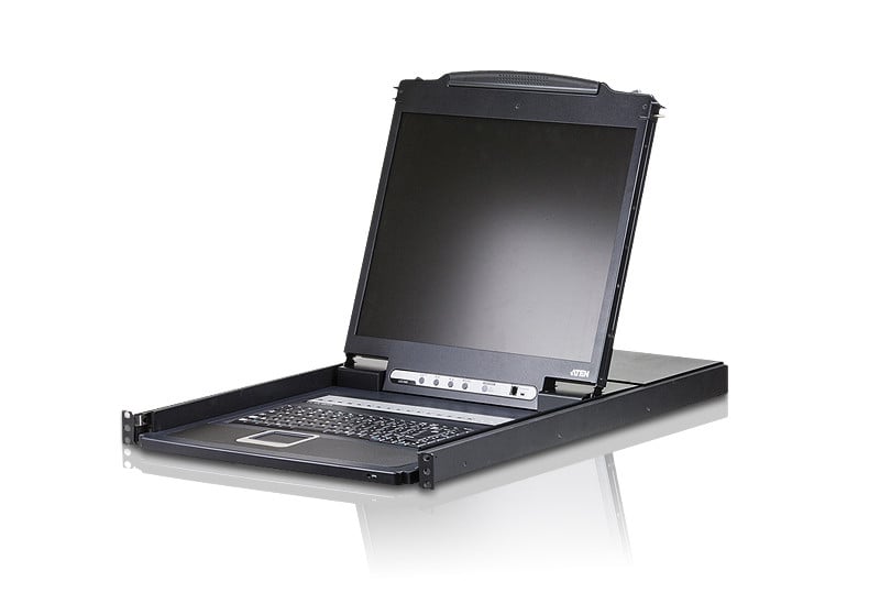 The ATEN CL3116 LCD KVM Switch offers a space-saving, streamlined approach to KVM switch technology by integrating a keyboard, an 18.5" LED-backlit LCD monitor, and a touchpad in a 1U rack-mountable sliding housing. Its short-depth design maximizes space utility for equipping rack-mounting devices in narrow spaces. The exclusive LED illumination light provides users with proper visibility when working in low-light conditions.