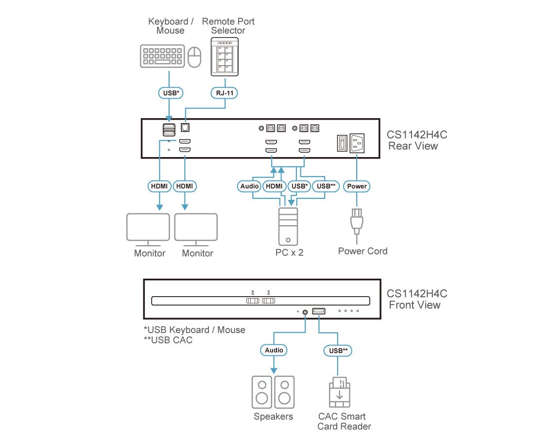 The ATEN CS1142H4C Secure KVM Switch is engineered to meet the rigorous security standards required for defense and intelligence installations. This KVM switch is compliant with the PSD PP v4.0 standard, certified by the National Information Assurance Partnership (NIAP), ensuring maximum data security.