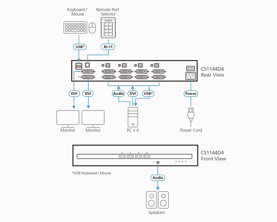 With its rugged metal enclosure and strict audio filtration, the ATEN CS1144D4 is perfect for organizations that handle sensitive information, such as government agencies, healthcare providers, and financial institutions.