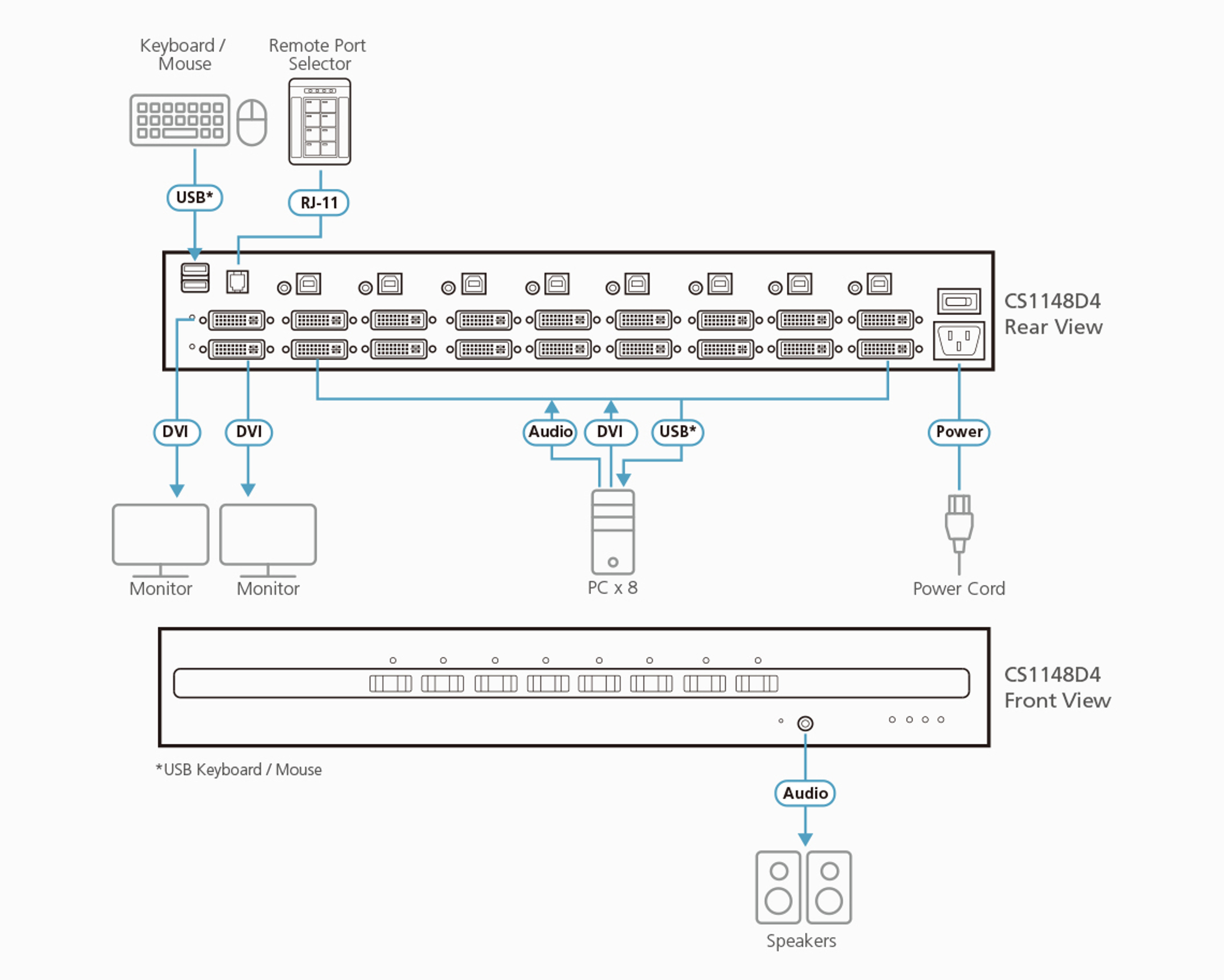 ATEN CS1148D4 Secure KVM Switch - High Security & 4K Video Output