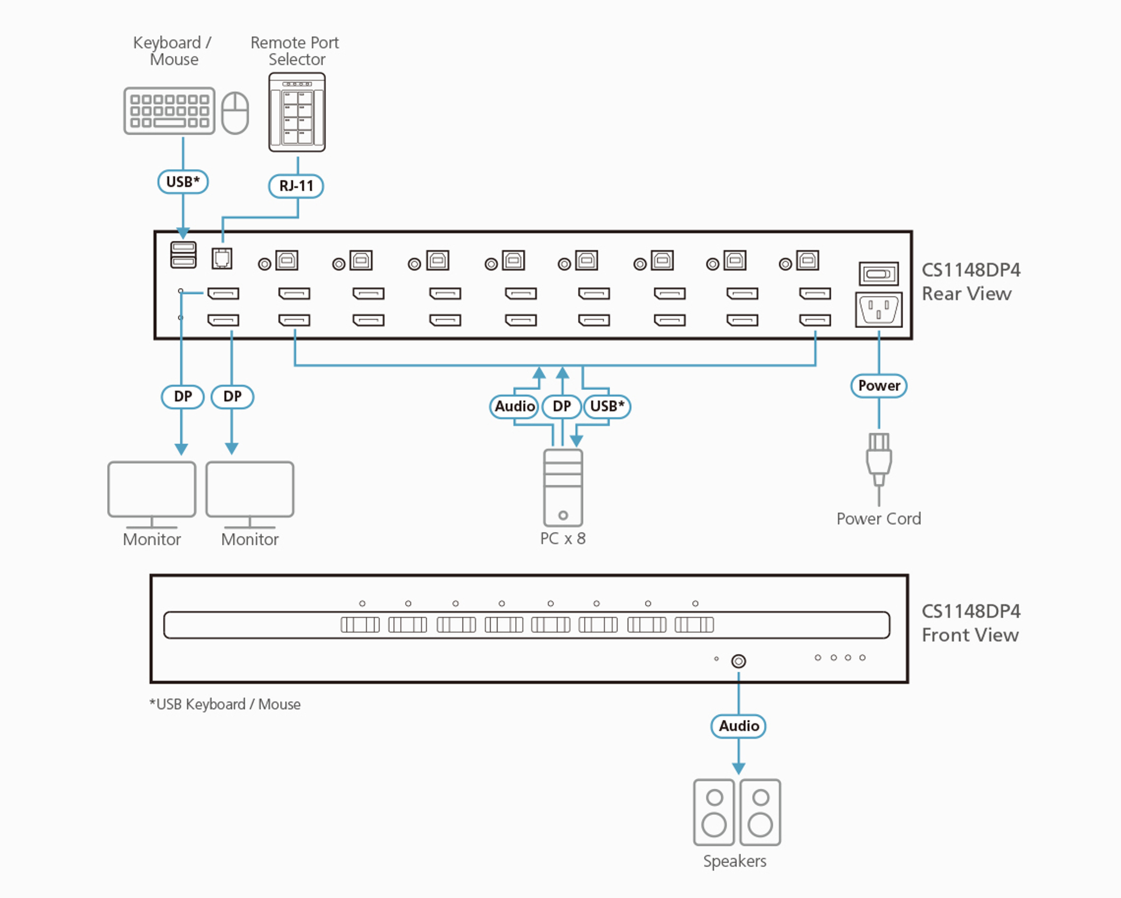 ATEN CS1148DP4 Secure KVM Switch - High Security & 4K Video Quality
