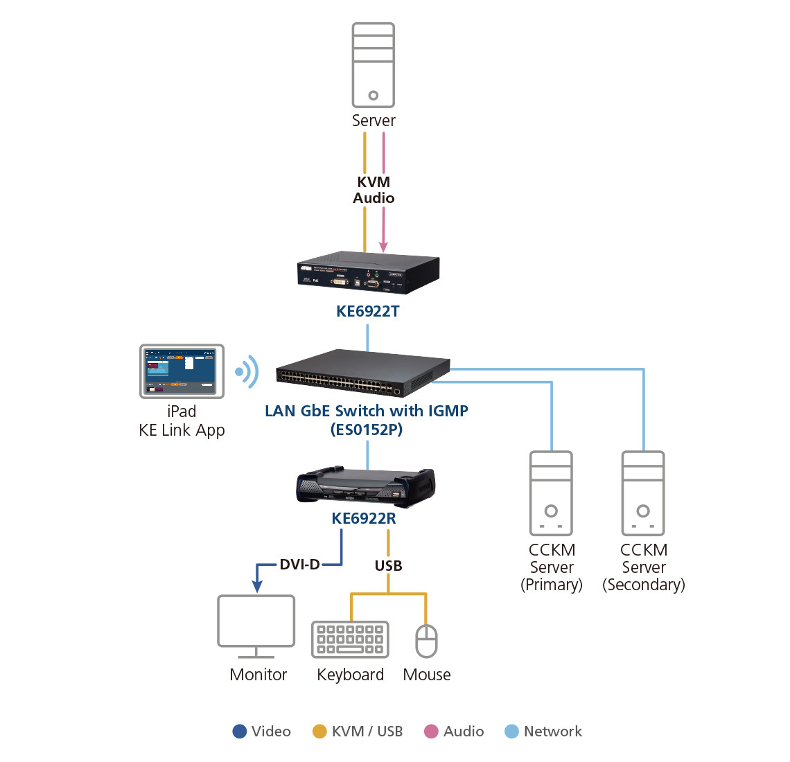 The KE6922 is a high-performance IP-based extender that includes a transmitter (KE6922T) and a receiver (KE6922R). This innovative solution allows users to access computer systems remotely via USB consoles (USB keyboard, USB mouse, DVI monitor) over an intranet, making it ideal for secure and temperature-controlled environments.