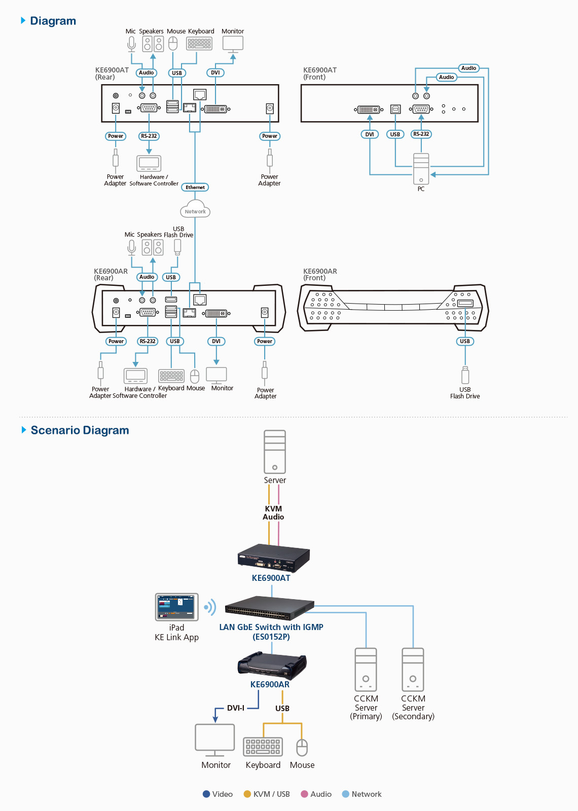 With features like auto detection of devices, username/password authentication, and an OSD, the KE6900AT is the most cost-effective and convenient solution for full digital extension over your intranet.