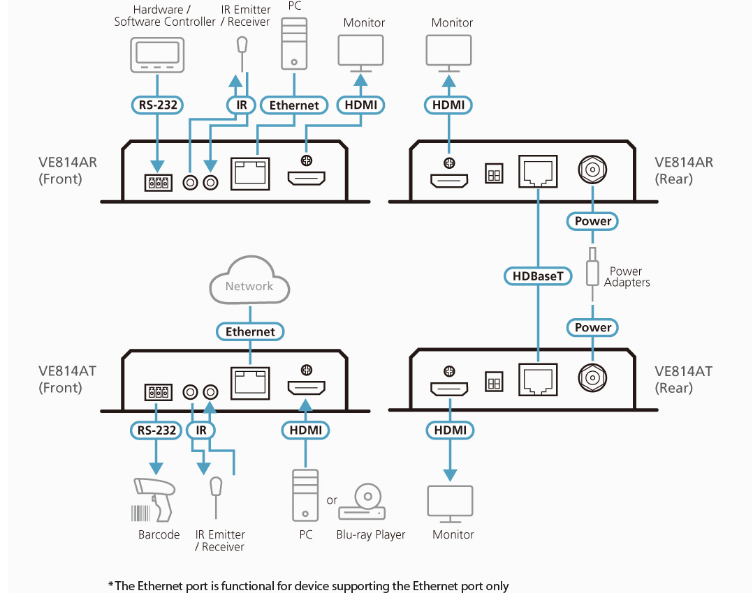 The ATEN VE814AT is a high-performance HDBaseT Video Transmitter designed to deliver exceptional video quality and versatility. Capable of transmitting HDMI signals up to 100 meters over a single Cat 5e/6/6a or ATEN 2L-2910 Cat 6 cable, this transmitter is perfect for various applications, including digital signage in bars, educational spaces, and public transportation stations.
