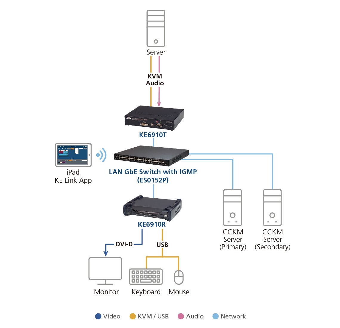 Whether for monitoring, controlling, or extending computer access, the KE6910T is adaptable for various environments, including traffic management centers, retail surveillance, and network operations centers.