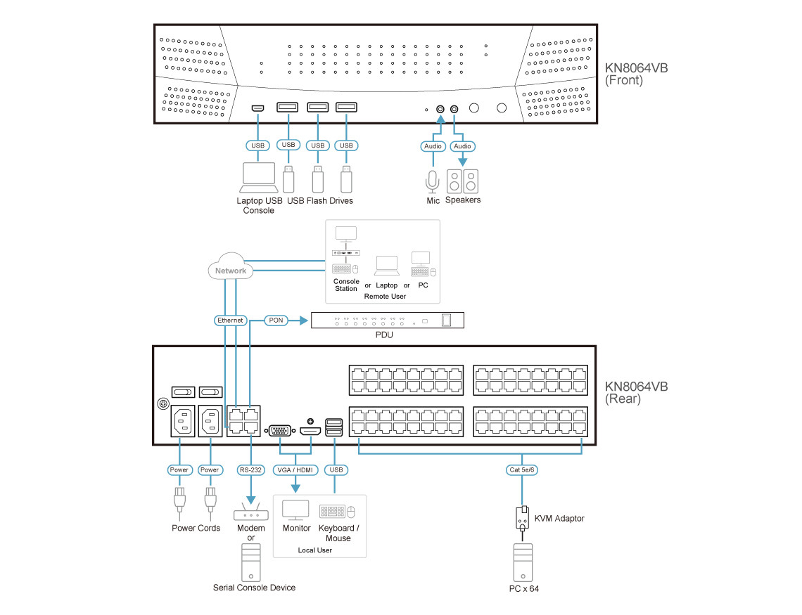 The ATEN KN8064VB KVM over IP Switch is designed for seamless local and remote access to your entire data center. With support for up to 64 computers and 2 local users, this switch ensures high efficiency and reliability.