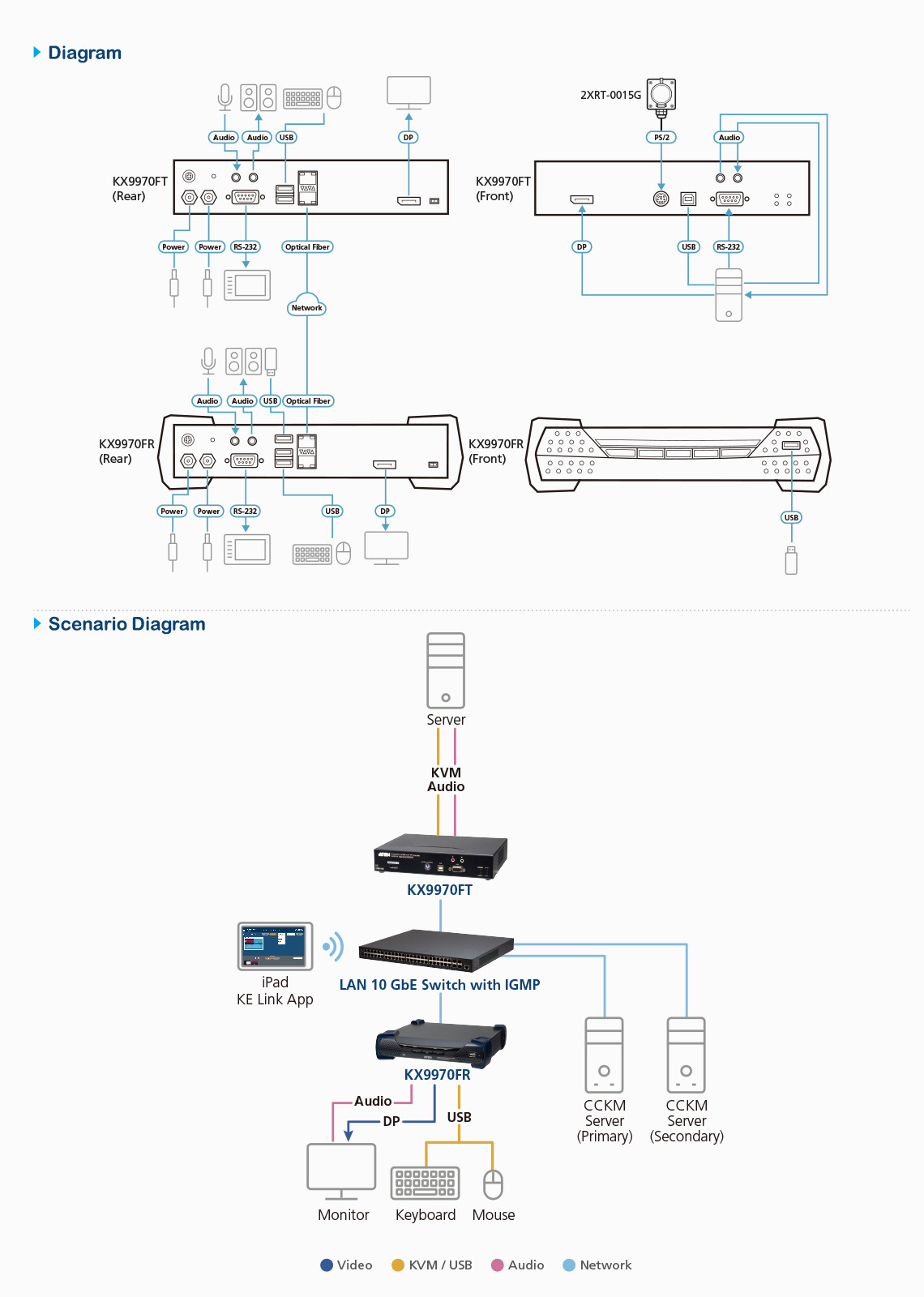 The KX9970FT 5K DisplayPort KVM over IP transmitter by ATEN is a high-performance solution designed for seamless transmission of keyboard, video, mouse, and USB signals over IP networks. This advanced transmitter allows users to access computers remotely, making it ideal for secure and temperature-controlled environments.