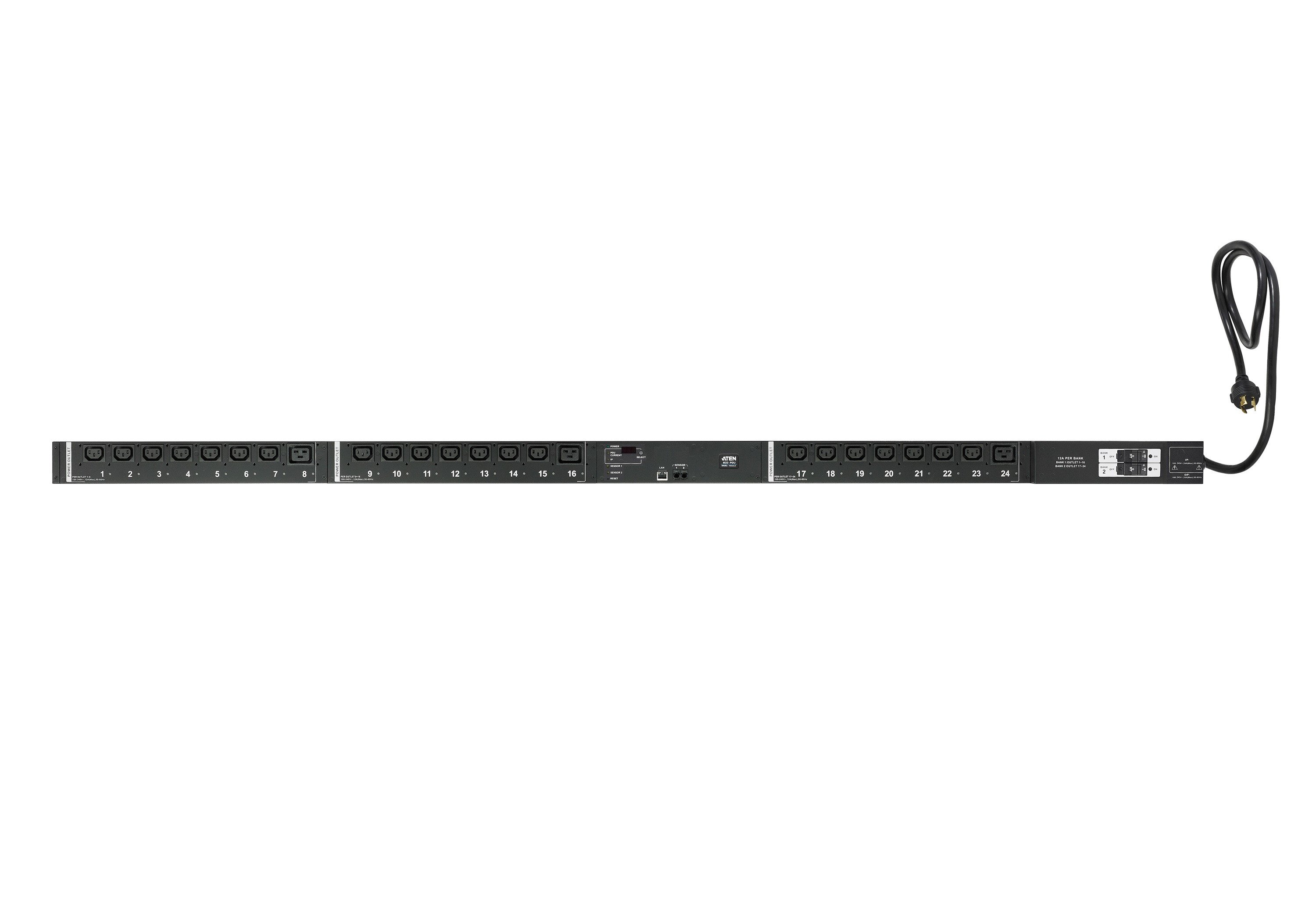 Enhance your data center's efficiency with the ATEN PE8216G Power Distribution Unit (PDU). This intelligent eco PDU features 16 AC outlets and is designed to optimize power usage while providing advanced management capabilities. Key features include: