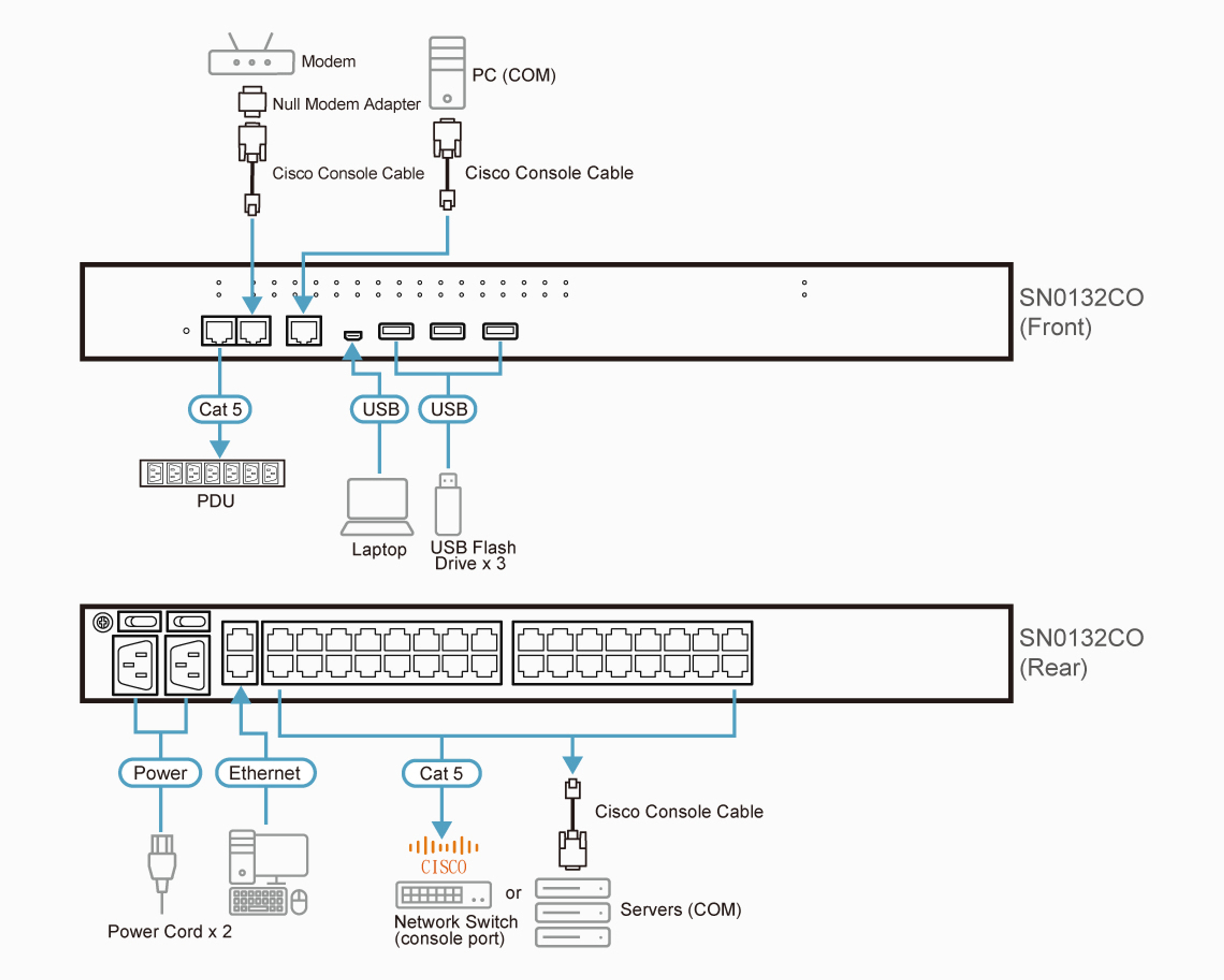 - Auto-Sensing DTE/DCE: Directly connects to Cisco network switches without the need for rollover cables.