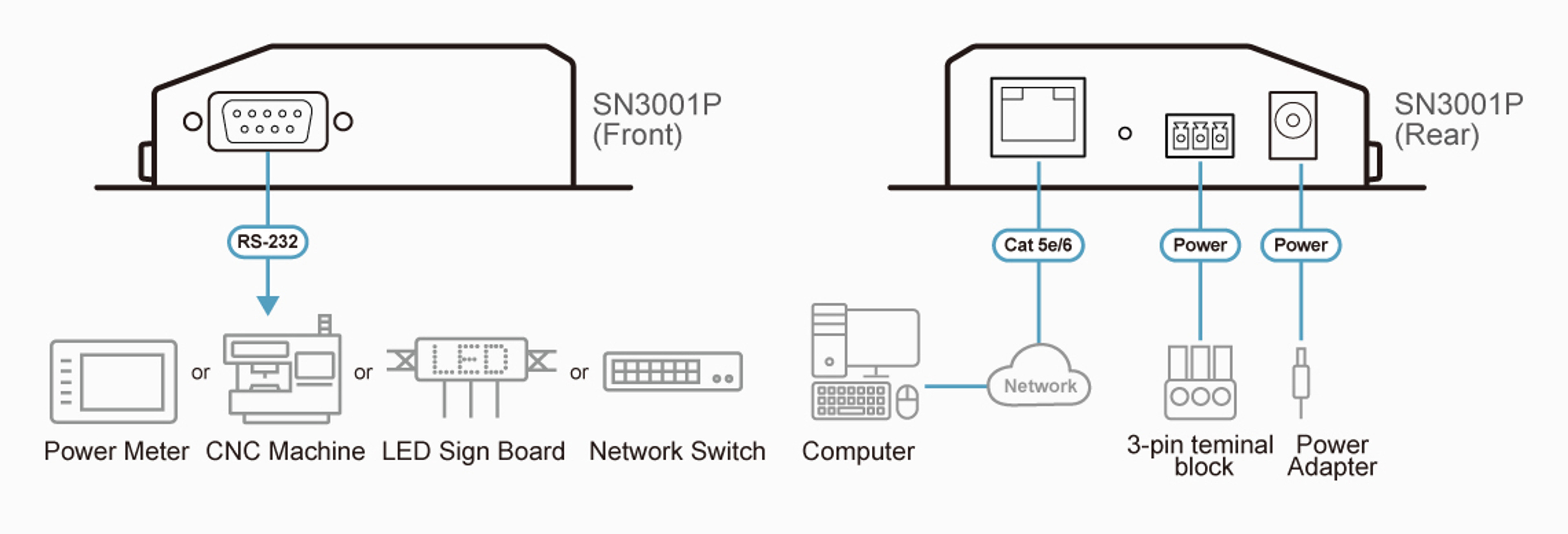 The ATEN SN3001P is a state-of-the-art Console Server designed to provide secure and efficient connectivity for legacy serial RS-232 devices over an Ethernet network. This device is ideal for industrial process control applications, particularly in environments utilizing Supervisory Control and Data Acquisition (SCADA) systems. With its ability to bidirectionally translate data between serial and Ethernet formats, the SN3001P allows for seamless access to data from both local and remote sites.