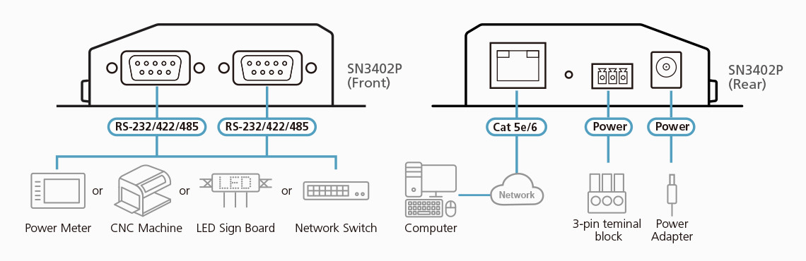 The ATEN SN3402P is an easy-to-use, secure, and reliable solution for connecting a wide range of serial devices to an IP-based Ethernet LAN. This device server provides fast serial-to-Ethernet connectivity, allowing users to remotely access serial RS-232/422/485 devices from anywhere.