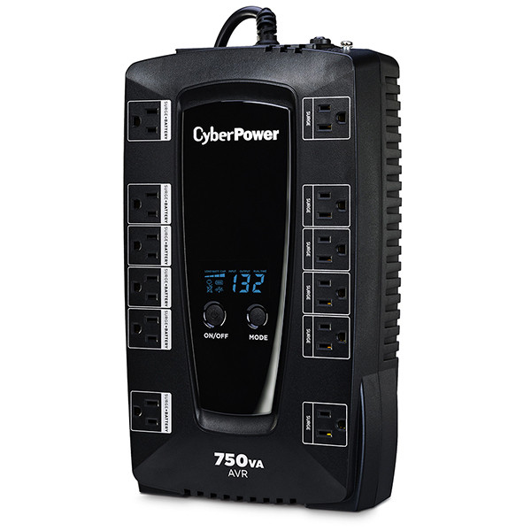The CyberPower AVRG750LCD is a reliable line-interactive UPS designed to protect your PCs and electronic devices from power disturbances such as blackouts, brownouts, surges, spikes, and sags. Featuring advanced Automatic Voltage Regulation (AVR) technology, it ensures consistent and clean AC power, preventing costly interruptions and equipment damage.