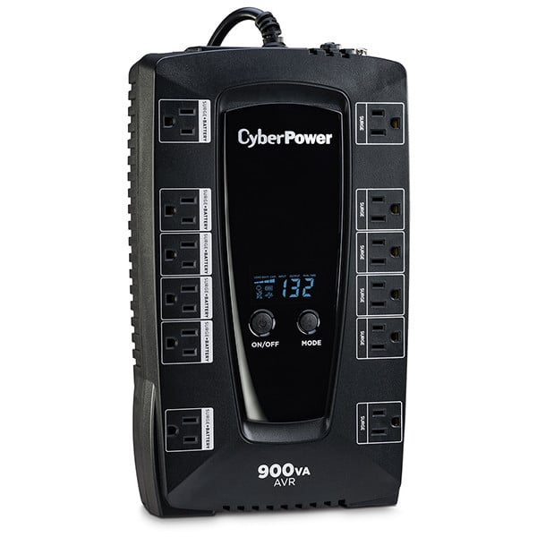 This UPS offers a robust capacity of 900VA/480W and includes 12 NEMA 5-15R outlets, with six providing battery backup and surge protection, and six offering surge protection only. Its intelligent multifunction LCD panel displays real-time UPS status for easy monitoring and control.