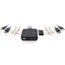 Introducing the two port MiniView™ Micro USB PLUS KVM switch from IOGEAR - the simplest way to simultaneously run and share audio among two computers with a single USB keyboard, monitor and USB mouse. This self-powered KVM switch features the unique USB sniffing technology for USB mouse and keyboard emulation to ensure smooth operation, as well as support for Plug-n-Play monitors and most wheel mice.