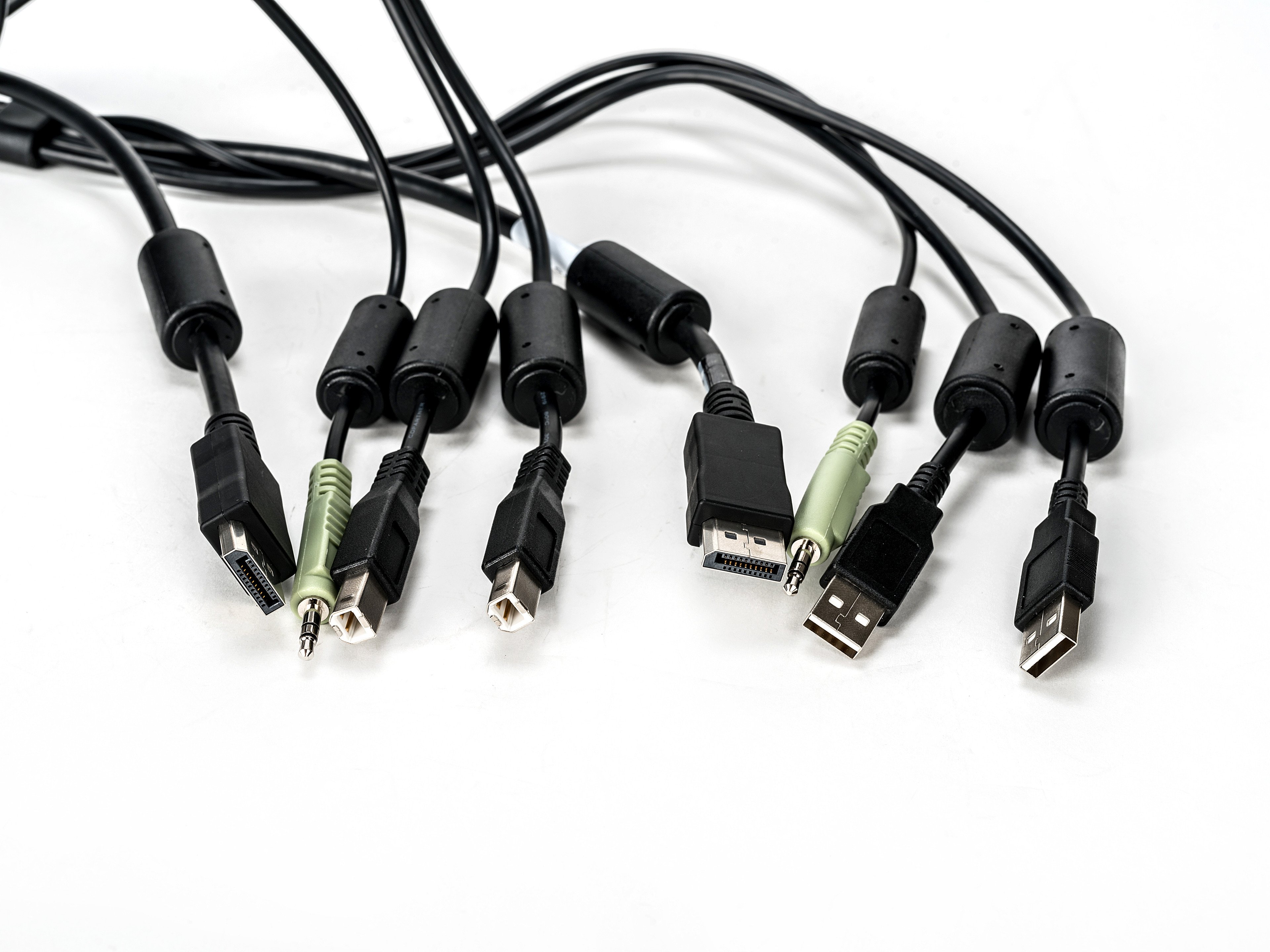 - All-In-One Video KVM Cable: Combines video, USB keyboard & mouse, and audio connections.