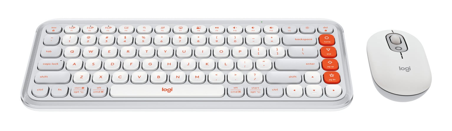 The wireless keyboard’s smooth, low-profile keys are designed for precise, comfortable, and quiet typing. The POP Mouse's gentle contour fits snugly in your palm, and the SilentTouch Technology makes every click whisper-quiet.