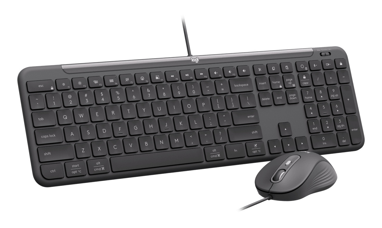 The Logitech Signature Slim Wired Combo MK625 is designed for professional environments requiring dependable wired connectivity. This combo includes a full-size keyboard with laptop-style, low-profile keys for a fluid and quiet typing experience, and an ambidextrous mouse featuring SmartWheel technology for precise and fast scrolling.