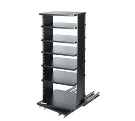 The Middle Atlantic ASR-30 is designed for installing non-rackmount audio and video equipment in discreet locations, such as custom cabinetry or behind closed doors. This rack cabinet is perfect for smaller systems or when an open shelf system is preferred without the need for customizable shelf fronts. Its slide-out and rotating functionality enhances access to rear equipment connections, making installation and maintenance a breeze.