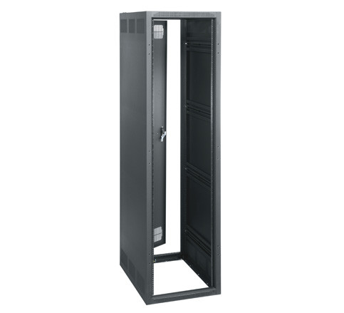 The Middle Atlantic BGR-3827-AV is a pre-configured 38U freestanding rack designed specifically for modern AV systems. This robust cabinet is built to support your audio-visual needs with a weight capacity of 3000.1 lbs (1360.8 kg). Crafted from durable steel and finished in sleek black, it not only provides strength but also enhances the aesthetic of your setup.
