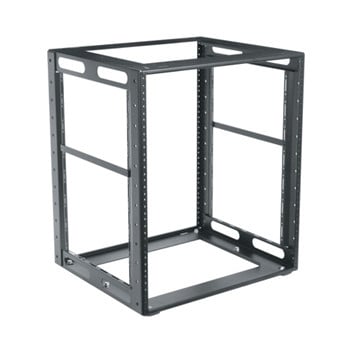 The CFR series low profile design maximizes usable rack space in entertainment systems, cabinets, and similar spaces. This 16U freestanding rack is constructed from strong, welded steel, ensuring durability and stability. With a weight capacity of 249.1 lbs (113 kg), it is ideal for pre-loading equipment and easy transportation to the installation site.