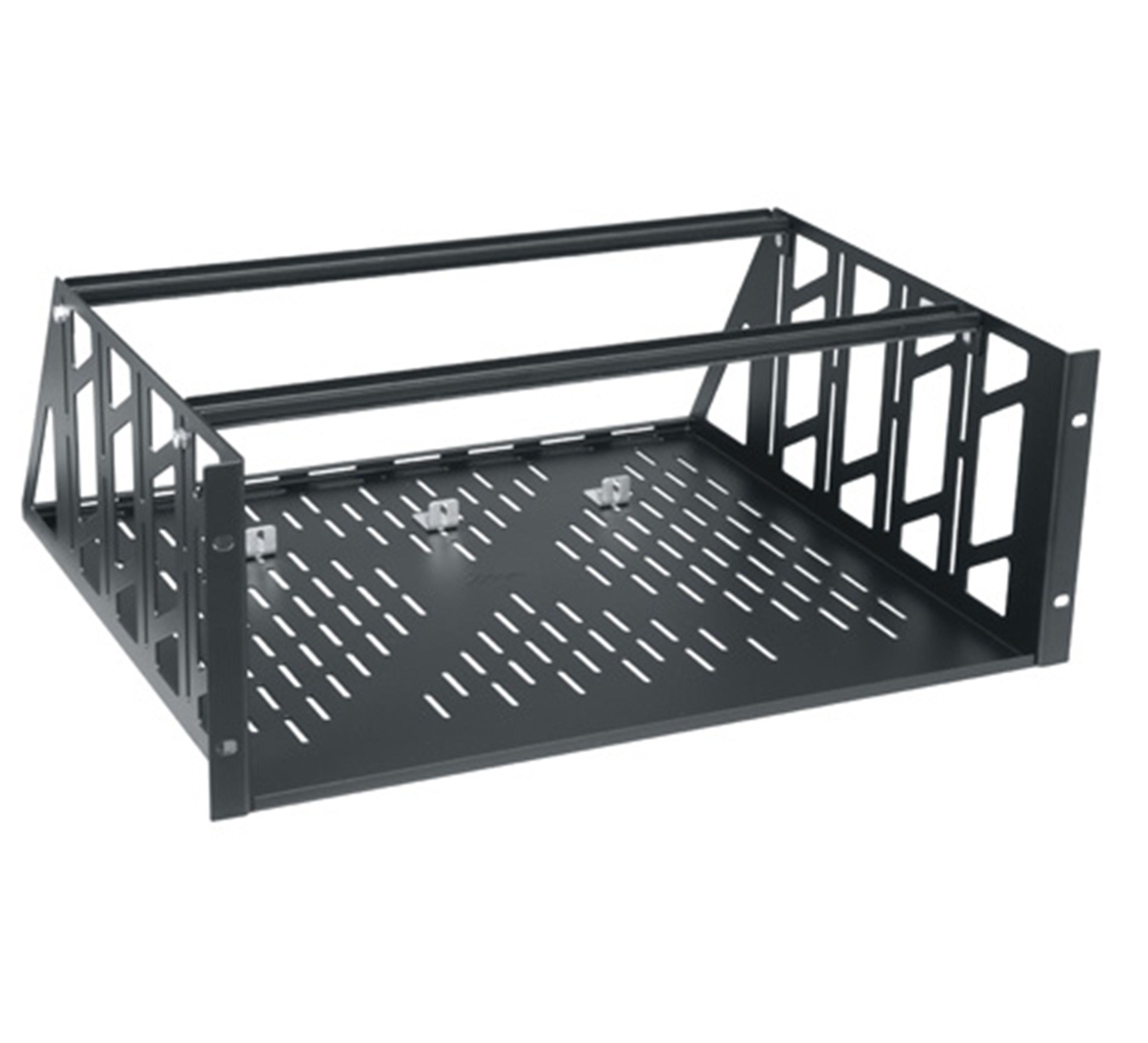 The Middle Atlantic Products RC-3 Rack Shelf is designed to securely hold your components with its innovative clamping system. Featuring rubber-lined clamps, this shelf ensures that your equipment stays in place, while adjustable rear 'L' brackets prevent any unwanted movement. The vented bottom promotes efficient cooling, making it ideal for mobile applications. Crafted from robust 16-gauge steel and finished in a durable black powder coat, this shelf combines strength and style. With a usable shelf area of 17.38”w x 15.10”d, it is perfect for a variety of setups.