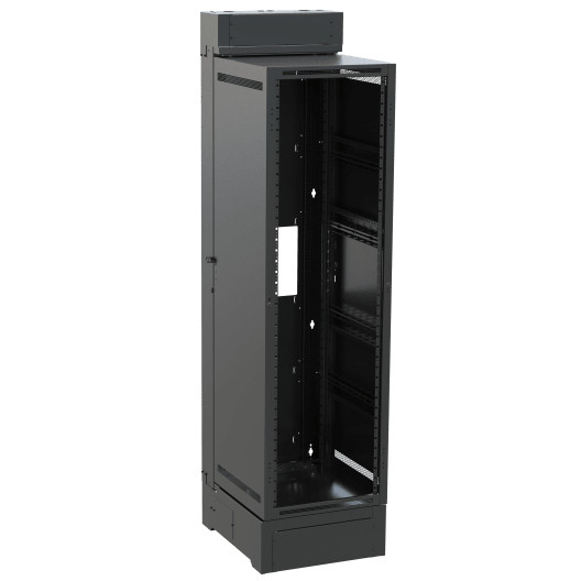 The Middle Atlantic Products SR28-46-32 is a versatile and innovative 46U freestanding rack cabinet designed for optimal accessibility and space efficiency. Its unique pivoting design allows the rack to open 90° on a floor base, providing quick access to rear equipment connections without the need for an aisle behind the rack. This makes it ideal for installations that require easy access to on-wall cabling or pull boxes.