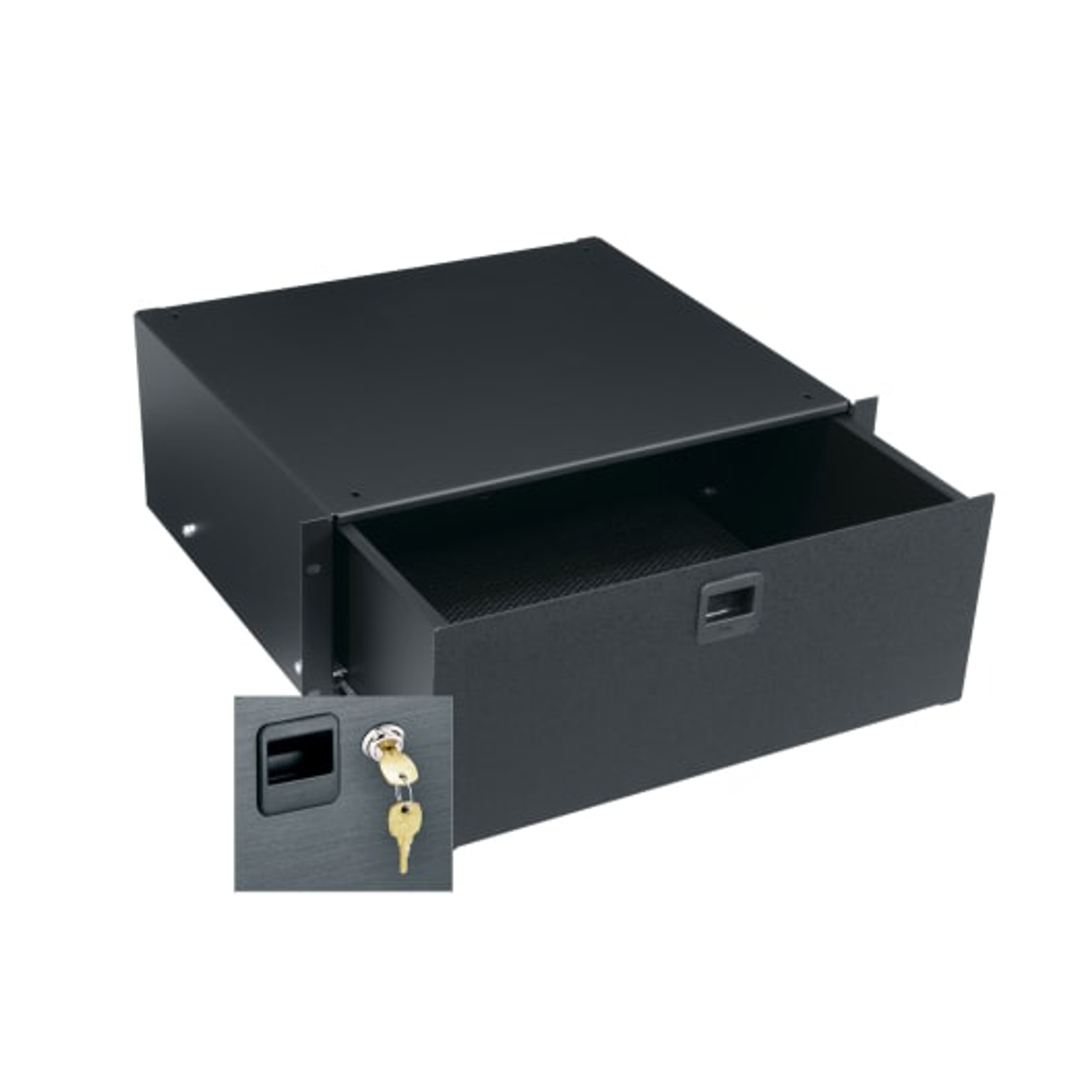 The Middle Atlantic TD3LK is a robust and secure drawer unit designed for efficient storage in your rack setup. With a fully enclosed top and a sleek black textured finish, this drawer not only enhances the aesthetics of your workspace but also provides practical functionality.