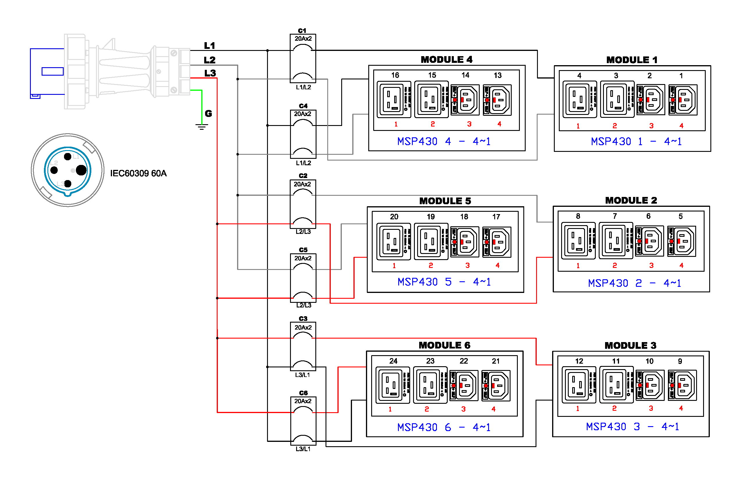 IEC 60309 3P+E 9h 60A (3P4W)