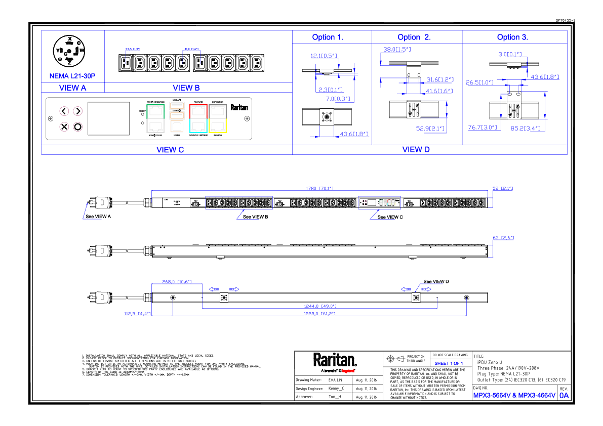 3PH, 208V AC, 30A (24A/PH rated), 30 outlets: 24 x IEC C-13, 6 x IEC C-19, plug:NEMA L21-30P (Wye, bottom/bottom feed), 8.6kVA, Zero U vertical PDU, Ethernet,serial, 2 x USB-A, USB-B and sensor connections