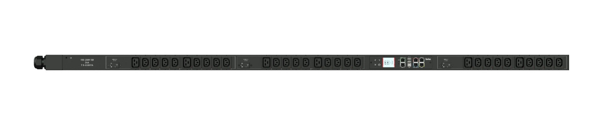 3PH, 208V AC, 30A (24A/PH rated), 30 outlets: 24 x IEC C-13, 6 x IEC C-19, plug:NEMA L21-30P (Wye, bottom/bottom feed), 8.6kVA, Zero U vertical PDU, Ethernet,serial, 2 x USB-A, USB-B and sensor connections