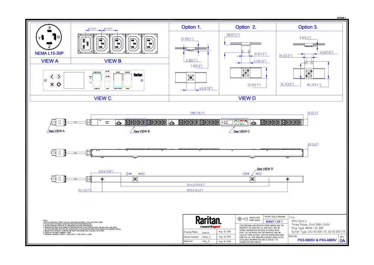 The PX-5000 series is available in Zero U (vertical mount) and 1U and 2U (horizontal mount) form factors with a wide variety of NEMA, IEC and other plugs and receptacles, including models that support high power distribution such as 400V. Precise power information can be monitored, and the PX-5000 configured, via a user-friendly Web browser GUI or command line interface. Power information is also displayed at the PDU locally. Security is ensured with up to 256-bit encryption, strong passwords and advanced authorization options, including permissions, LDAP/S and Active Directory®. Plus the PX-5000 series is fully compatible with Raritan's Power IQ energy management software solutions.