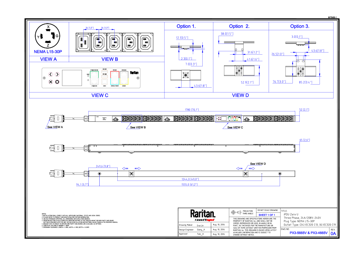 3PH, 208V AC, 30A (24A/PH rated), 30 outlets: 24 x IEC C-13, 6 x IEC C-19, plug:NEMA L15-30P (Delta, bottom/bottom feed), 8.6kVA, Zero U vertical PDU,Ethernet, serial, 2 x USB-A, USB-B and sensor connections