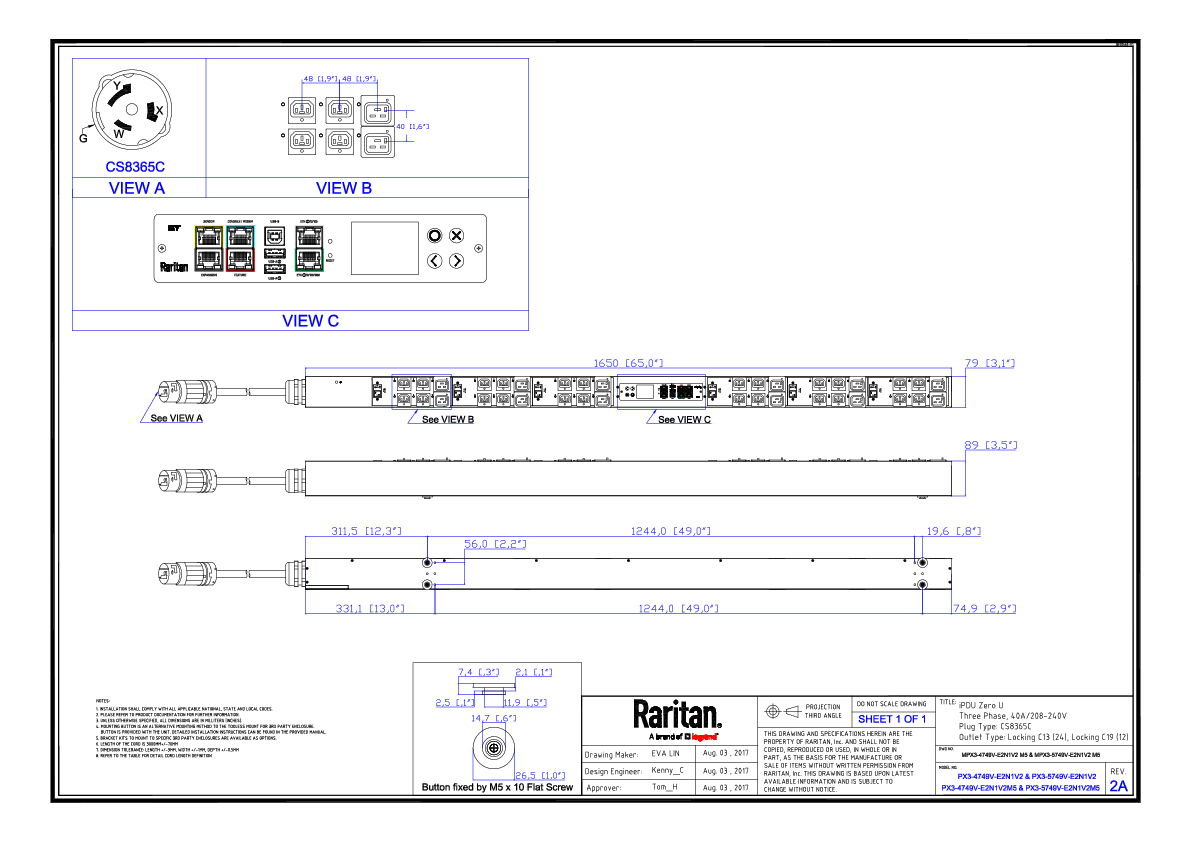 Special V2 three-phase models with sequenced line pairs of outlets simplify load balancing and dramatically improve power cord dressing & airflow.