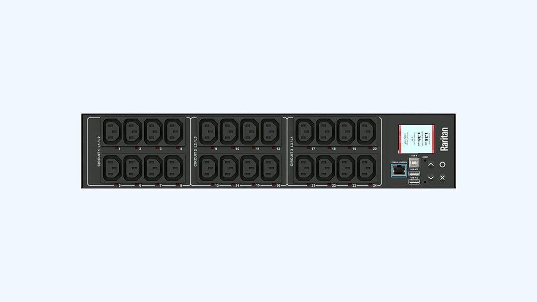 3PH, 208V AC, 60A (48A/PH rated); 48 outlets: 48x C13; plug: IEC 60309 3P+N+E 9h 60A (Delta Bottom-bottom feed), 17.3kVA; Outlet Metered/Switched, Zero U vertical PDU