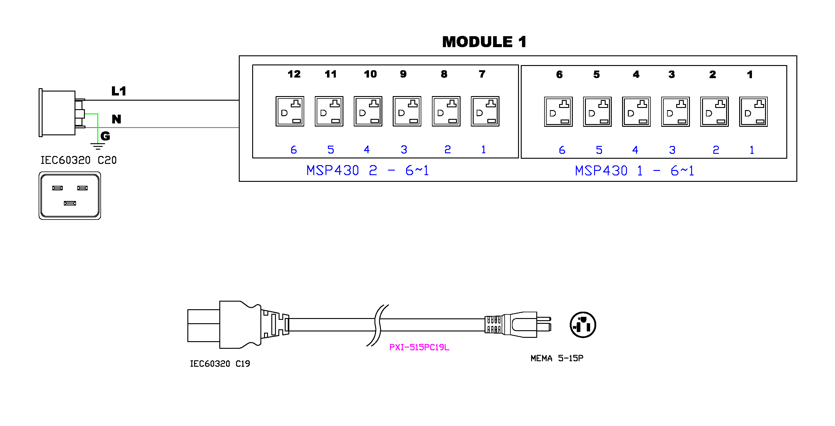 1PH, 120V AC, 15A (12A rated); 12 outlets: 12x NEMA 5-20R; plug: NEMA 5-15P (Bottom-front feed), 1.4kVA; Outlet Metered/Switched, Zero U vertical PDU,