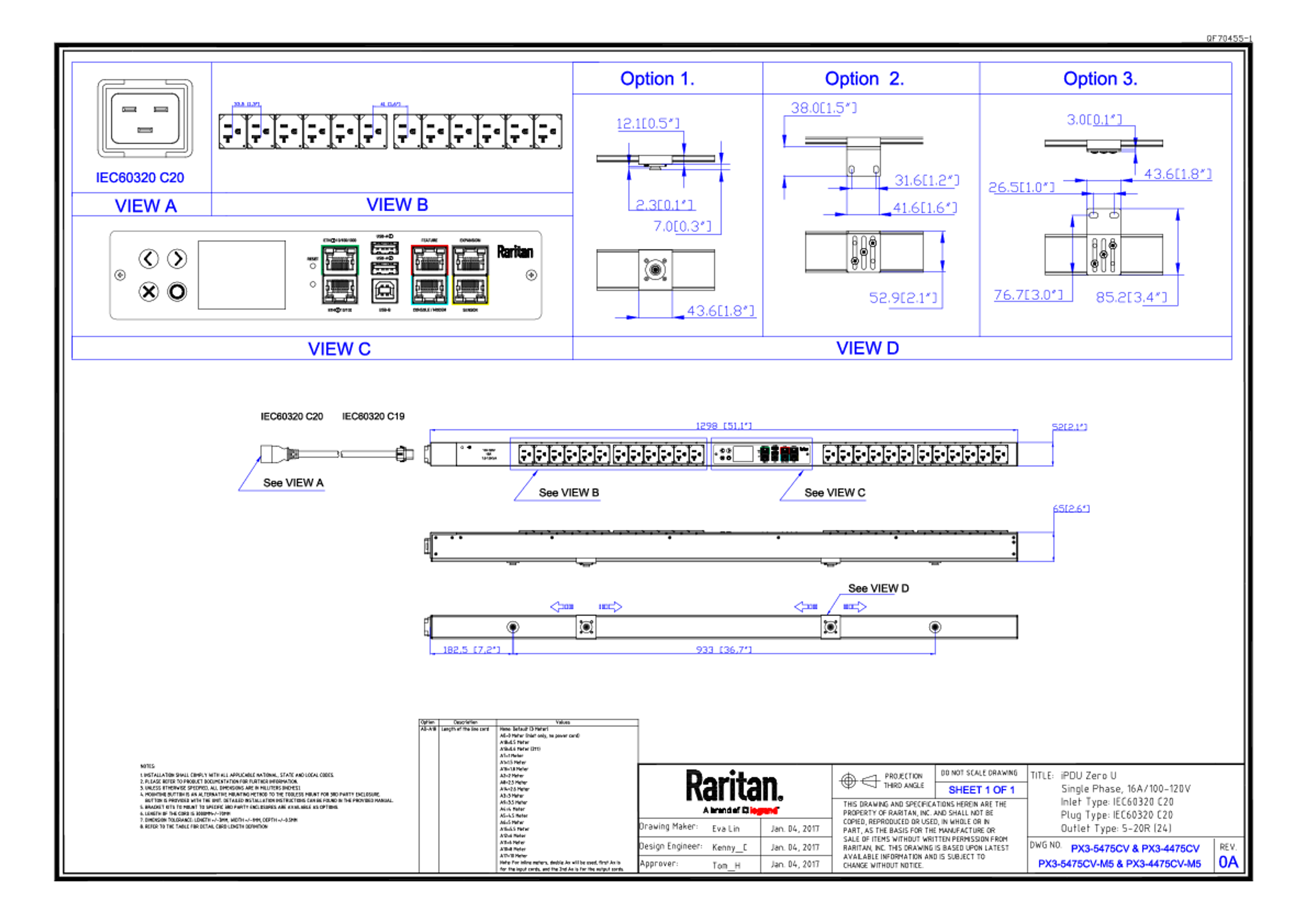 1PH, 120V AC, 16A (16A rated); 24 outlets: 24x NEMA 5-20R; plug: IEC 60320 C20 (Bottom-bottom feed), 1.9kVA; Outlet Metered/Switched, Zero U vertical PDU