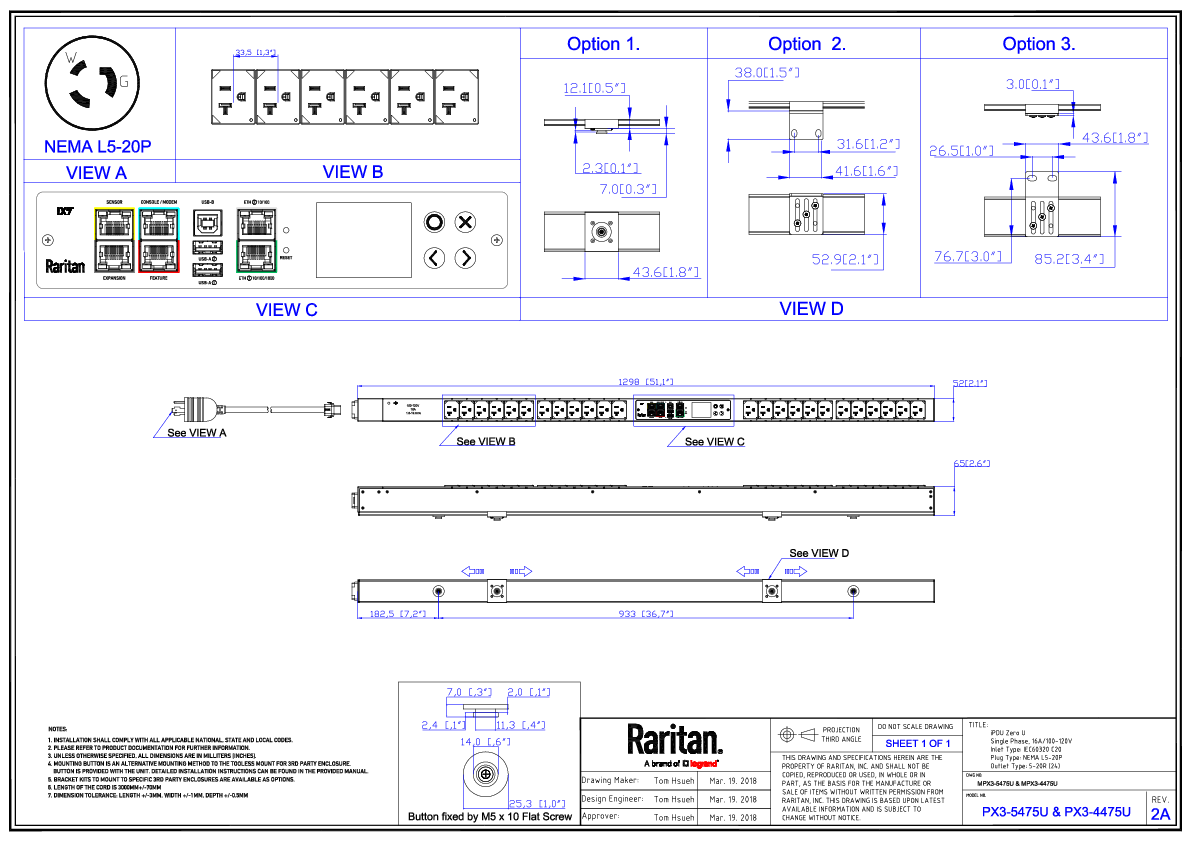 1PH, 120V AC, 20A (16A rated); 24 outlets: 24x NEMA 5-20R; plug: NEMA L5-20P (Top-top feed), 1.9kVA; Outlet Metered/Switched, Zero U vertical PDU