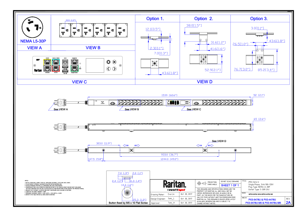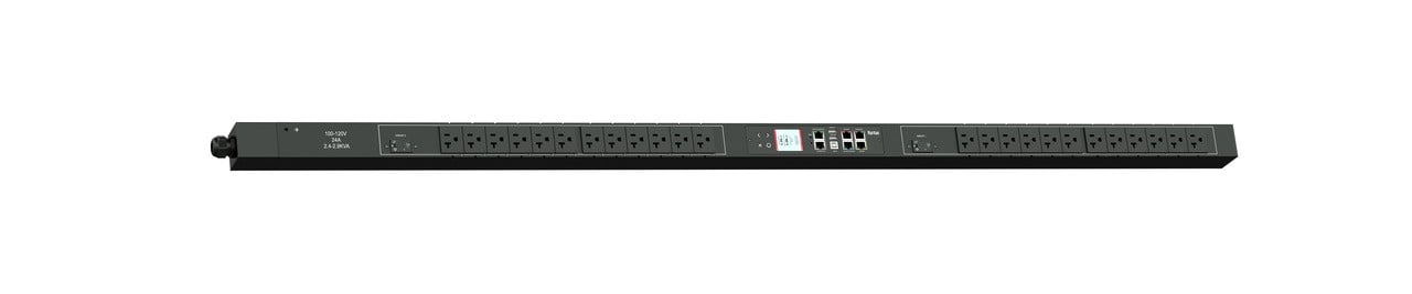 1PH, 120V AC, 30A (24A rated); 24 outlets: 24x NEMA 5-20R; plug: NEMA L5-30P (Top-top feed), 2.9kVA; Outlet Metered/Switched, Zero U vertical PDU