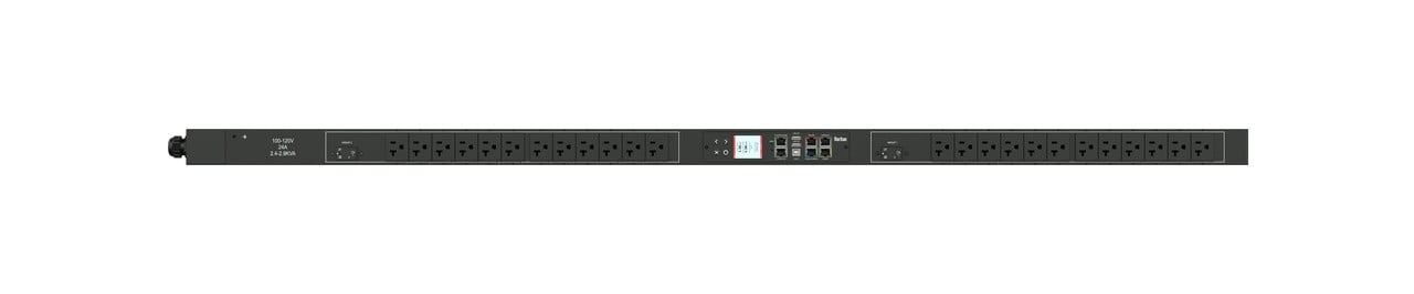 1PH, 120V AC, 30A (24A rated); 24 outlets: 24x NEMA 5-20R; plug: NEMA L5-30P (Top-top feed), 2.9kVA; Outlet Metered/Switched, Zero U vertical PDU
